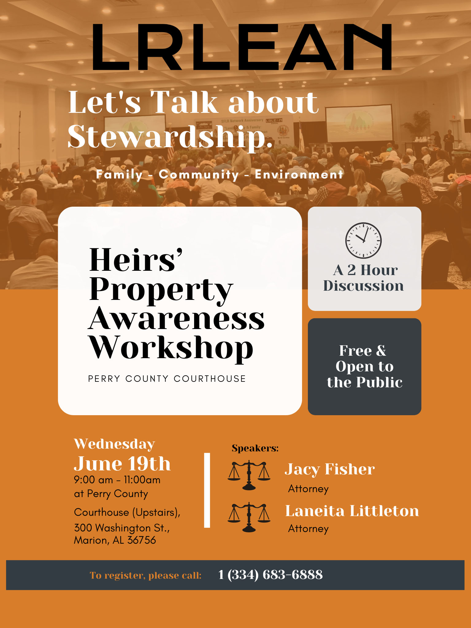 Heir's Property Awareness Workshops will be held on 19 June 2024 at Perry County Courthouse.